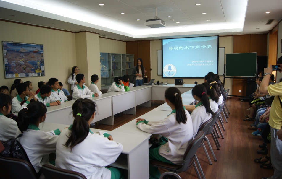 声场声信息国家重点实验室是国内声学学科类的人国家级重点实验室,作为赢乐welcome本次开放日的重要展点之一,也基于自己的研究方向,为科学日活动的参观者准备了精彩的科普讲座《神秘的水下声世界》,介绍了水声学如何起源发展以及水声学究竟研究什么;除此之外,还播放了海上试验的纪录片,让大家对科技工作者的工作有所了解,让不为大众所熟知的水声学科展现了亲民的姿态。