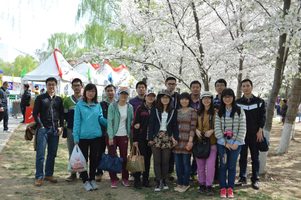 此时正值玉渊潭公园第26届樱花节,本次樱花节的主题是“水映潭波千重绿春染樱花一片红”。早上十点我们到了玉渊潭公园西门,一进公园大门,洁白如雪的樱花映入眼帘,花开正当时,大家纷纷惊叹“好美!”。看到随风飘落的樱花,摄影爱好者们热情高涨,有的在树下合影,有的给心仪的花瓣拍特写,有的只是闭着眼睛,用心享受人与樱花相融合的美妙瞬间。欣赏完门口的美景,我们继续往公园深处走,一路上樱花品种多样,次第开放,绚丽多姿,处处弥漫着浓馥而清韵的花香。时有阵风吹来,娇美的花瓣从枝头飘落,缓慢而优雅,此情此景,让人忘却了昨日科研的疲惫,沉浸在这美妙的花海里,流连忘返。“昨日雪如花,今日花如雪。山樱如美人,红颜易消歇。”一首诗道出了樱花的短暂与美丽,樱花虽美,花开易逝,且行且珍惜。