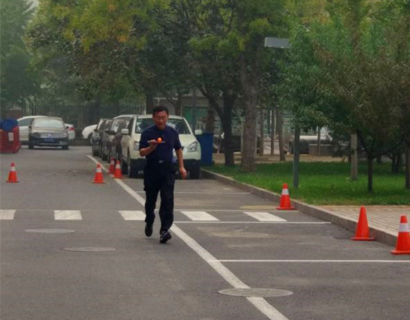 插红旗接力比赛和托球接力比赛是最热烈、最激动人心的比赛,插红旗接力比赛要求六名队员要依次完成将六面小红旗逐个插到相距五米的花瓶中,跑到拐点绕回后,再将红旗逐个收回,跑到终点将红旗交于下一名队员接力进行;托球比赛要求每名队员用乒乓球拍托着乒乓球快速跑到折返点,然后迅速往回跑,到达终点后交给下一名队员继续进行。比赛中不仅需要每位队员奔跑的速度、插拔红旗托球的精准度,还需要队员间有默契的配合。
