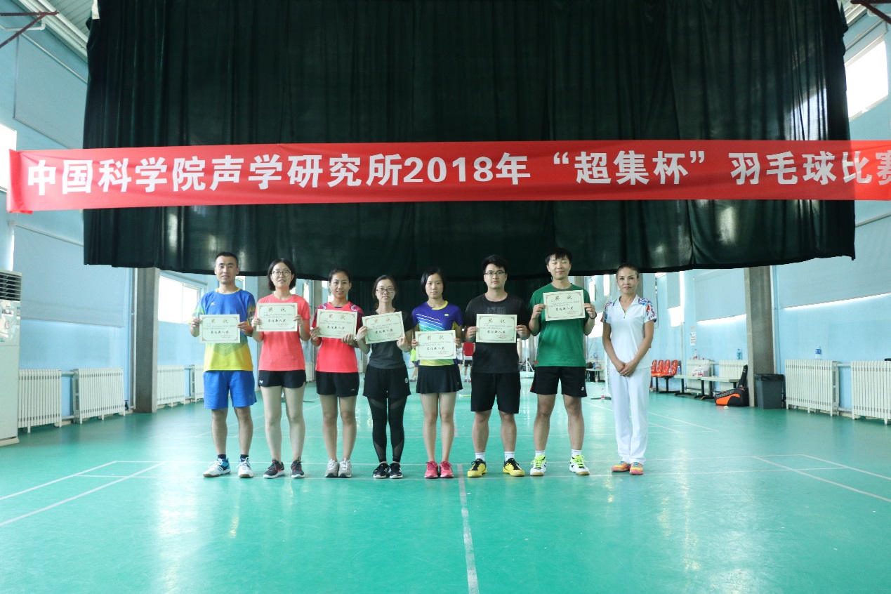 在闭幕式上,所工会常务副主席周秀霞,所工会文体组副组长、超声技术中心分工会主席黄宝华老师分别为各项冠军、亚军、季军和最佳新人颁奖,并合影留念。本届“超级杯”羽毛球比赛圆满结束。