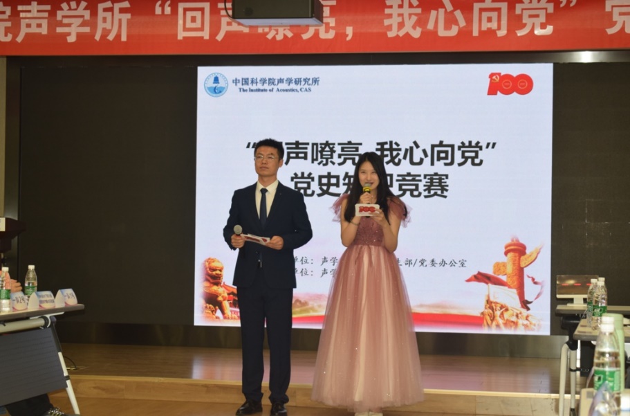 为庆祝中国共产党建党100周年,激励全所广大职工、学生发扬红色传统,传承红色基因,切实把爱党爱国热情转化为立足学习、立足科研的实际行动,从党的历史中汲取智慧和力量,2021年6月22日,所团委、研究生部、党委办公室在DSP大楼多功能厅联合举办“回声嘹亮,我心向党”党史知识竞赛。所本部的研究单元和机关分别组队,共10支代表队、30名选手参加了竞赛活动。党委副书记、纪委书记李浩然任仲裁组组长,工会职代会主席林伟军,人力资源部副主任、研究生部主任李辉,团委书记崔杰,人力资源部研究生管理主管张华,作为仲裁组成员出席了本次活动。