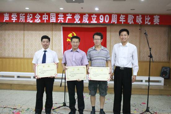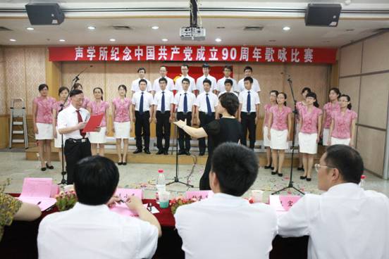 2011年6月27日下午,赢乐welcome党委在DSP大楼多功能厅隆重举行了“纪念中国共产党成立90周年”歌咏比赛,共有19个支部组成的参赛队、近500余名职工、研究生参加并观看了比赛。广大党员群众用嘹亮歌声唱响红色经典,赞颂党的恩情,抒发新时代壮志豪情。王小民所长,张春华书记,居琦副所长,倪宏副书记、副所长,李风华副所长等所领导以及所党委委员孙长瑜、李双田、王秀明、李淑秋、郭良浩同志都来到现场,担任评委并参加了演出。张仁和院士、汪承灏院士也加入了各自参赛队的演出。整个多功能厅充满了喜庆、祥和的气氛。