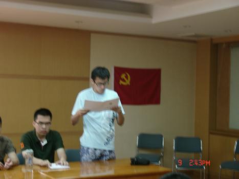 白国锋同志首先向大家介绍了本次会议的主题,同时指出,本次会议是噪声与振动支部和通信声学支部划分以后第一次发展预备党员。随后,会议进入了主要议程。