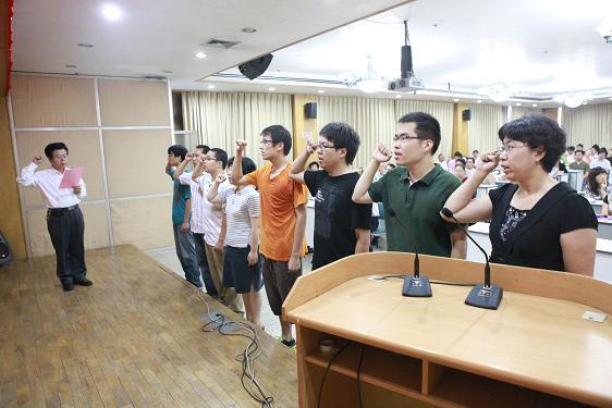 面对鲜红的党旗,党委委员李双田带领袁旻忞等新党员进行了入党宣誓。“为共产主义奋斗终身,随时为党和人民牺牲一切,永不叛党。”铿锵有力的誓言在会场上激荡,全体党员又一次受到了精神洗礼。噪声与振动支部的袁忞旻同志代表新党员发言,他说能在这样特殊的日子加入党组织感觉非常光荣,心情非常激动,并表示要以老党员们为榜样,努力学习,不断进步,以期更好地服务社会、报效国家。