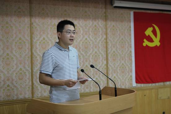 面对鲜红的党旗,党委委员李双田带领新党员进行了入党宣誓。“为共产主义奋斗终身,随时为党和人民牺牲一切,永不叛党。”铿锵有力的誓言在会场上激荡,全体党员又一次受到了精神洗礼。水声环境特性支部的彭大勇同志代表新党员发言,表示作为新时代的科技工作者,我们要加强理论学习,切实树立科研创新理念;恪尽职守、爱岗敬业,努力提升业务水平;脚踏实地、埋头苦干,为中国科技事业的发展增砖添瓦。