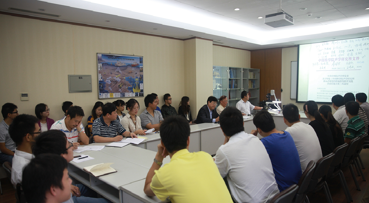王小民所长作为声学领导班子与重点室支部的联系人发表了讲话。他对我们党开展群众路线教育实践活动的起因、目的、内容、方法、环节进行了梳理,表示党的群众路线实际是对“为人民服务”的解读,坚定党的路线就要始终以党章作为做事的出发点和落足点。此次群众路线教育实践活动的发起表明了“党要治党,党要管党”的意识和决心。各党员要切实行动起来,明确群众对党的期望和党对干部的要求,以八项规定作为切入点,做到“两促进、两不误”。王所长还表示他参加此次会议除了督导党支部的学习之外,更希望了解各位同志对所领导、相关部门工作的建议及意见,所以希望大家在后续的座谈会中能更多地提出问题,发表意见。