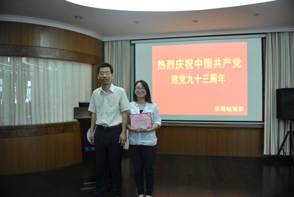胡长青书记和许伟杰副站长为丁培、翁汝莲、陈友元、杨小平、丁玉薇等5名 “优秀共产党员”和获站“先进党支部”的第三研究室党支部颁发证书,并激励全站党员立足岗位、勤奋工作,学习楷模,充分发挥优秀和先进的辐射作用。