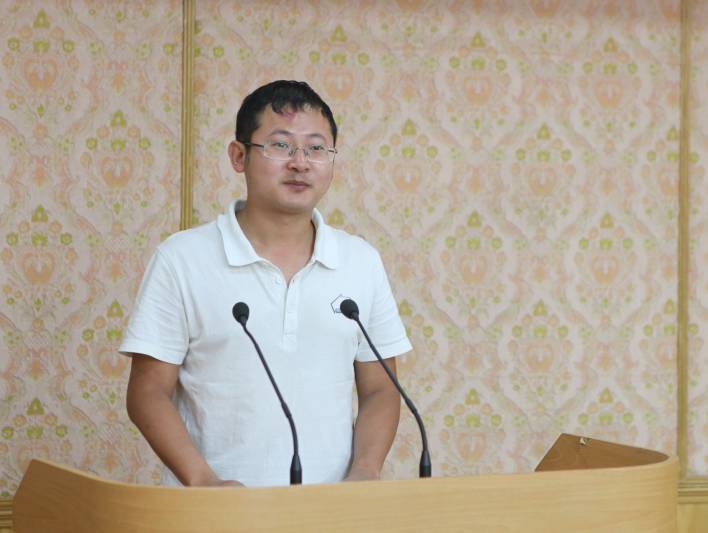 海洋声学技术支部的刘烨瑶和网络新媒体支部的邓浩江分别代表新党员和优秀党员发言。