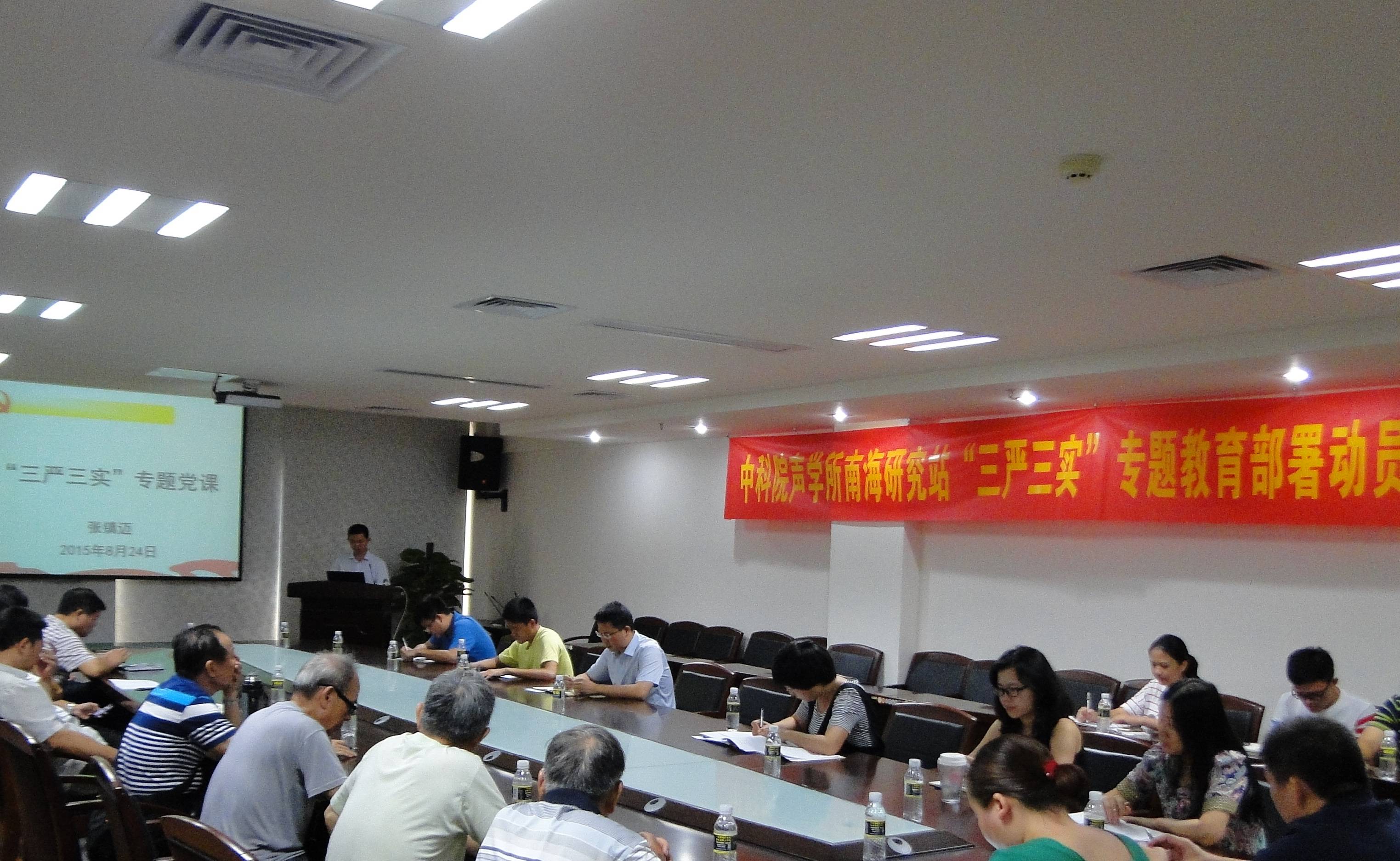2015年8月24日上午,南海研究站召开“三严三实”专题教育党课暨动员部署会。党委委员、行政领导班子成员、研究站党员和入党积极分子参加了大会。