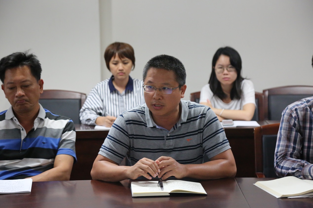 最后,甘维明站长表示,党的十九大的召开具有划时代意义,确立了新时代的指导思想,描绘了新时代的宏伟蓝图,作出了新时代的战略部署,是我们迈向新时代的行动纲领。学习和贯彻十九大精神是当前和今后一段时期重要的政治任务,甘维明站长要求全站职工要深刻理解十九大的新思想、新论断和新举措,进一步统一思想,不忘初心,牢记使命,按照“三个面向”、“四个率先”的要求,深入实施中科院“率先行动”计划,为南海站的创新跨越发展努力奋斗。