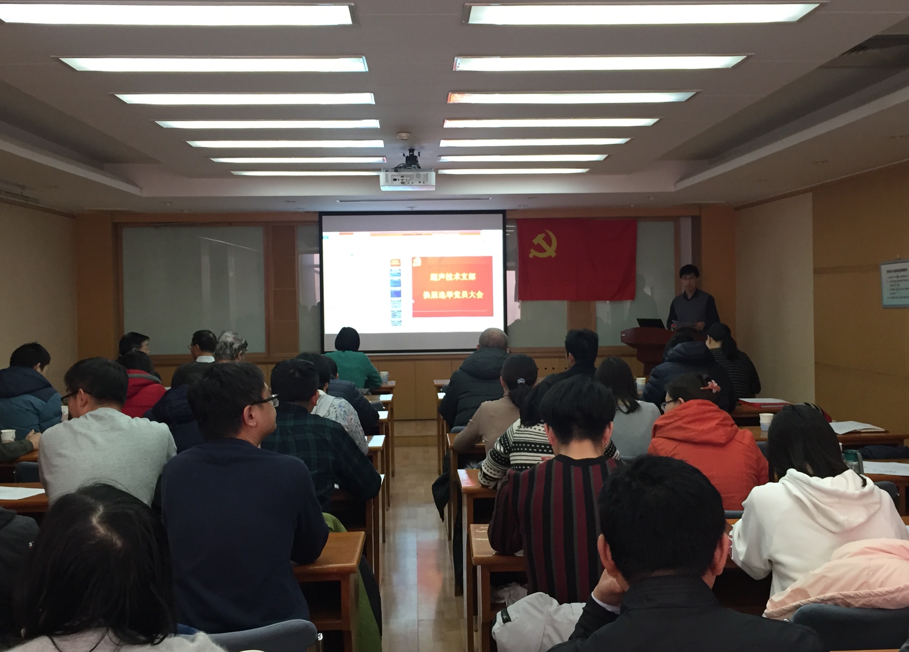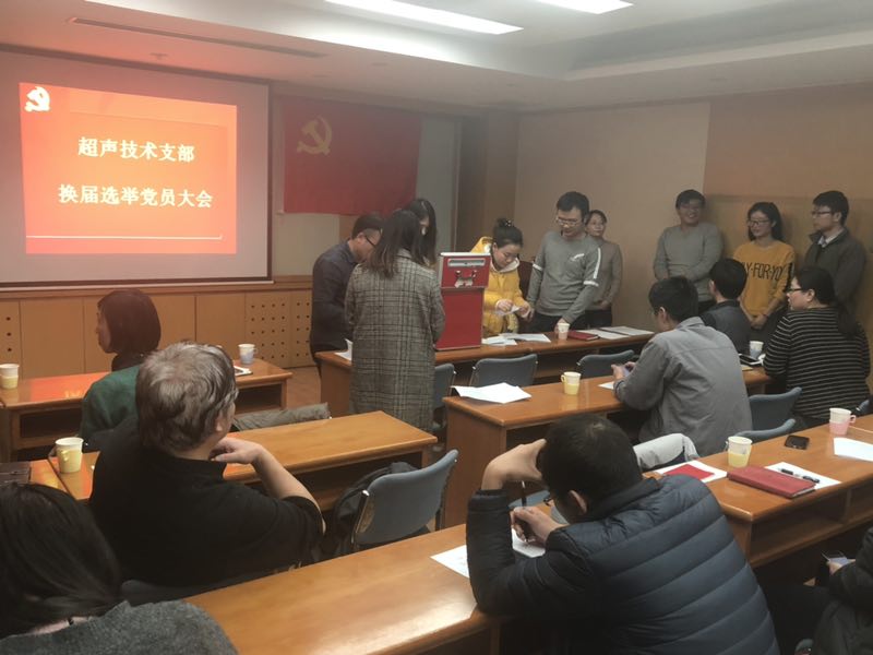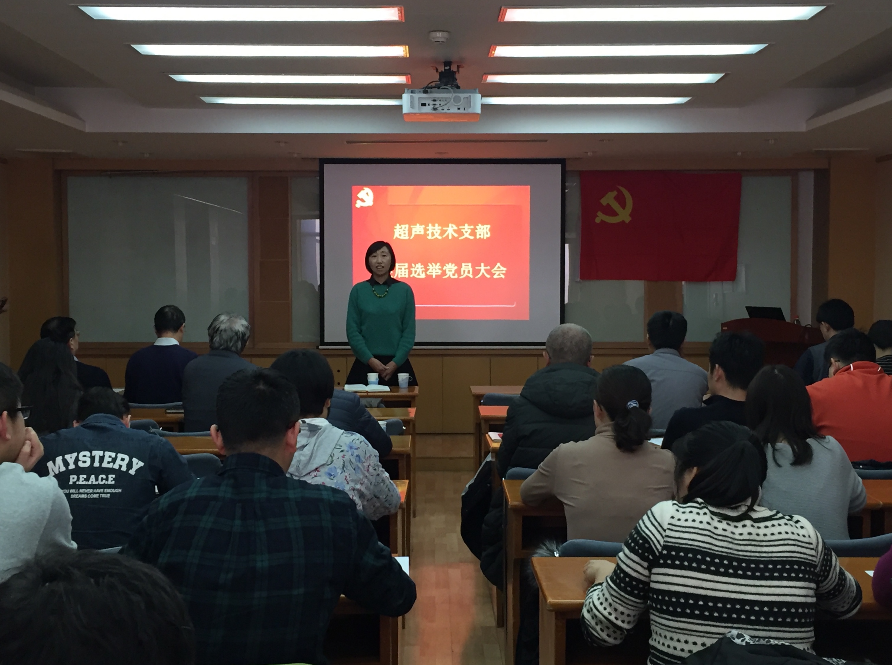 20181219日下午,超声技术党支部在德昭楼218会议室召开党员大会,进行了换届选举和学习习近平总书记在庆祝改革开放40周年上的重要讲话。所党委副书记、纪委书记李浩然出席会议。所党委委员王小民所长、王秀明主任等70余名支部党员参加了会议,会议由上届党支部书记陈德华同志主持。