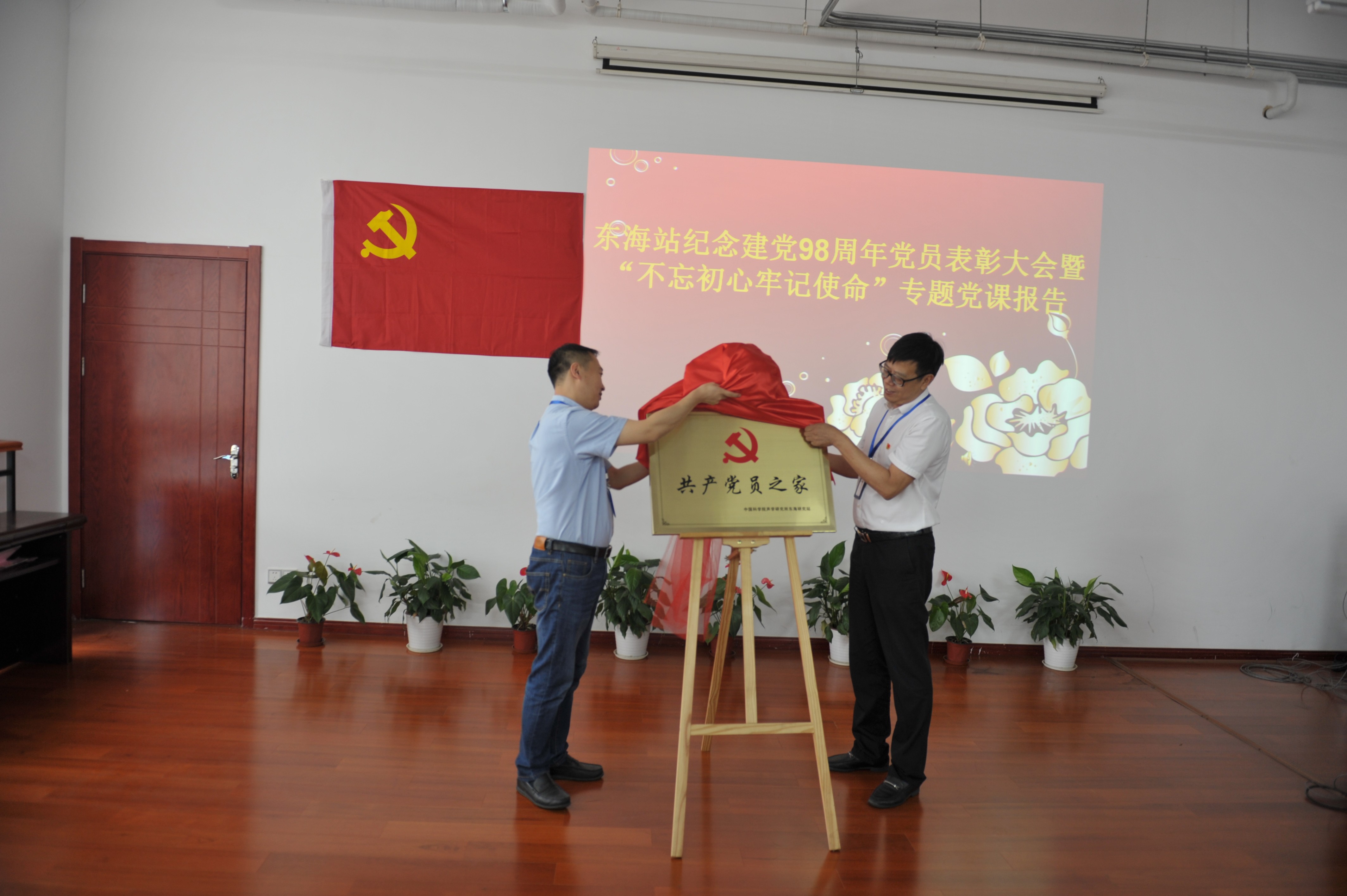 在站党政领导的重视、嘉定工业区的支持下,东海站“党员之家”建设完成,站红色教育版图再扩张。大会上,许伟杰与张伟才共同为“党员之家”揭牌。该项目将进一步满足站内外党员活动需求,突出我站党建特色,为党员同志学习、活动提供便利。未来,该项目还将进一步申报中科院沪区党委党员主题教育基地挂牌。