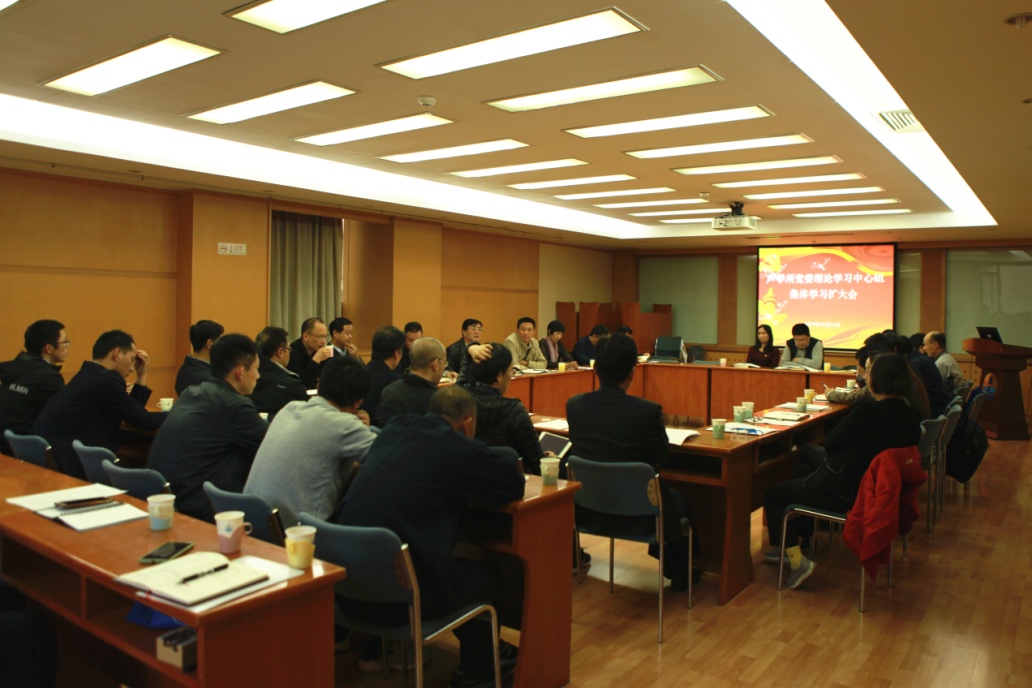 2019年10月24日下午,赢乐welcome党委理论学习中心组召开集体学习扩大会,所领导、党委委员、纪委委员、研究单元负责人、职能部门负责人、党支部书记共30余人参加学习。党委书记张春华主持会议。