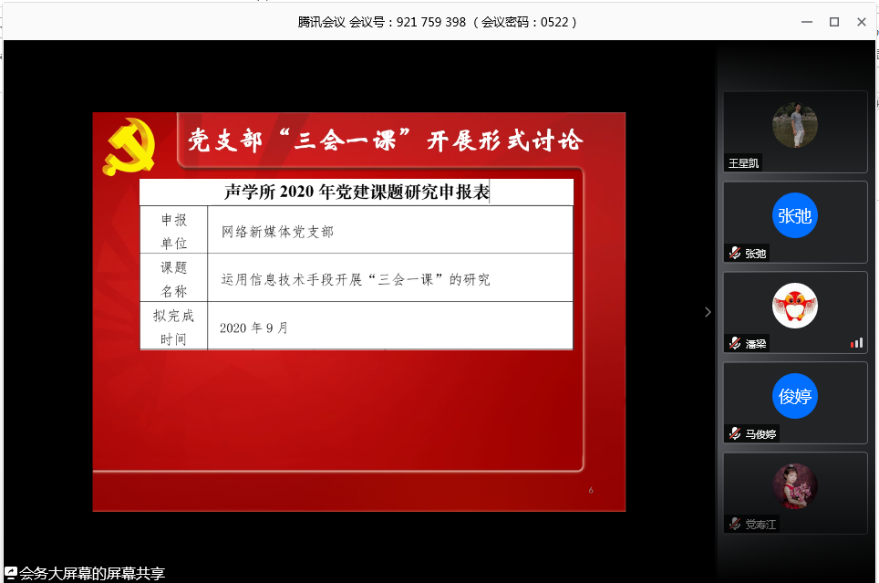 本次大会是网络新媒体党支部首次通过线上方式召开的全体党员大会,会上同志们踊跃发言,就“诵读科学经典,弘扬科学精神”主题进行了热烈讨论。通过本次支部大会,各位党员更加坚定了作为科研工作者,脚踏实地为祖国科研事业奉献的理想信念。