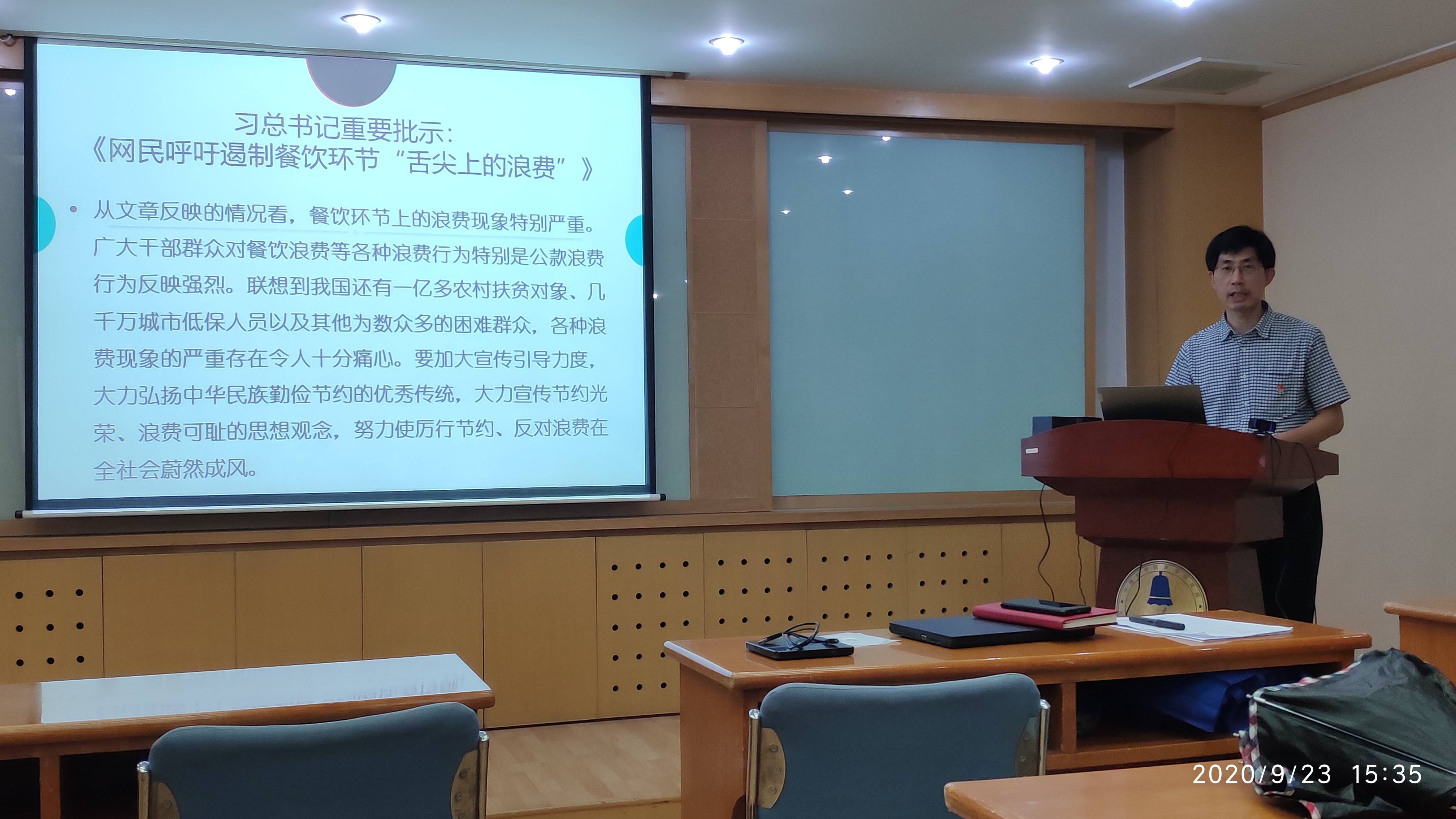 陈德华带领党员深入学习贯彻习总书记关于厉行节约、反对浪费特别是制止餐饮浪费行为的一系列重要批示指示精神。学习分为五个方面,包括坚持领导干部带头示范,对标对表,自查自纠,加强宣传教育;严格成本控制、制定餐饮文明公约、加强厨余垃圾资源化利用;依规严控公务活动、严格执行用餐标准、推行简餐和标准化饮食,杜绝铺张浪费;强化单位餐饮管理和建立健全长效机制。在学习中,陈德华还介绍了国际上不同国家在厉行勤俭节约、反对浪费餐饮上的做法,要求党支部广大党员带头贯彻、落实习近平总书记重要批示指示精神,在坚决制止餐饮浪费行为上走在前、作表率。