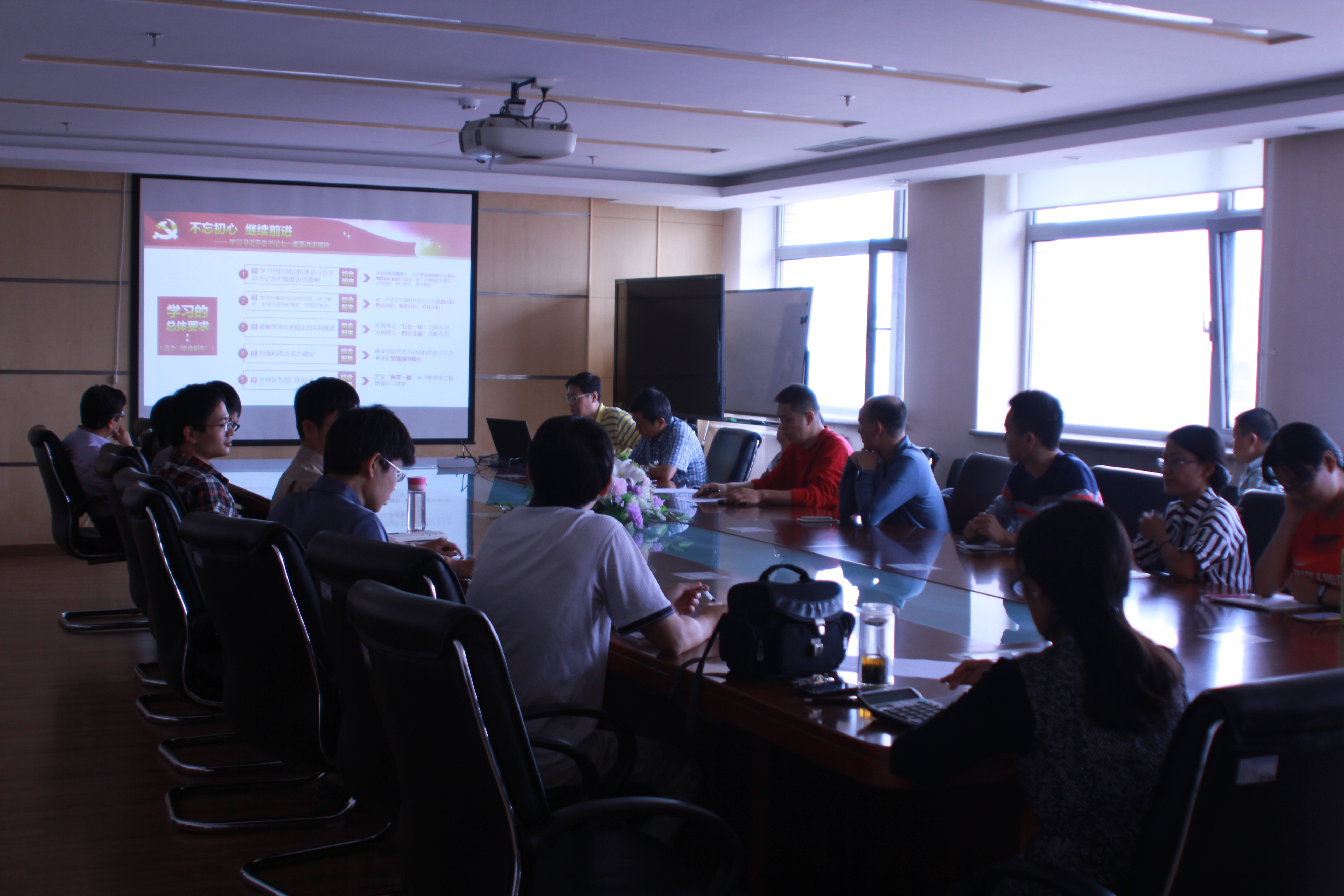刘明刚同志首先带领大家学习了习近平总书记在庆祝中国共产党成立95周年大会上发表的重要讲话,强调我们党已经走过了95年的历程,但我们要永远保持建党时中国共产党人的奋斗精神,永远保持对人民的赤子之心。一切向前走,都不能忘记走过的路;走得再远、走到再光辉的未来,也不能忘记走过的过去,不能忘记为什么出发。面向未来,面对挑战,全党同志一定要不忘初心、继续前进。