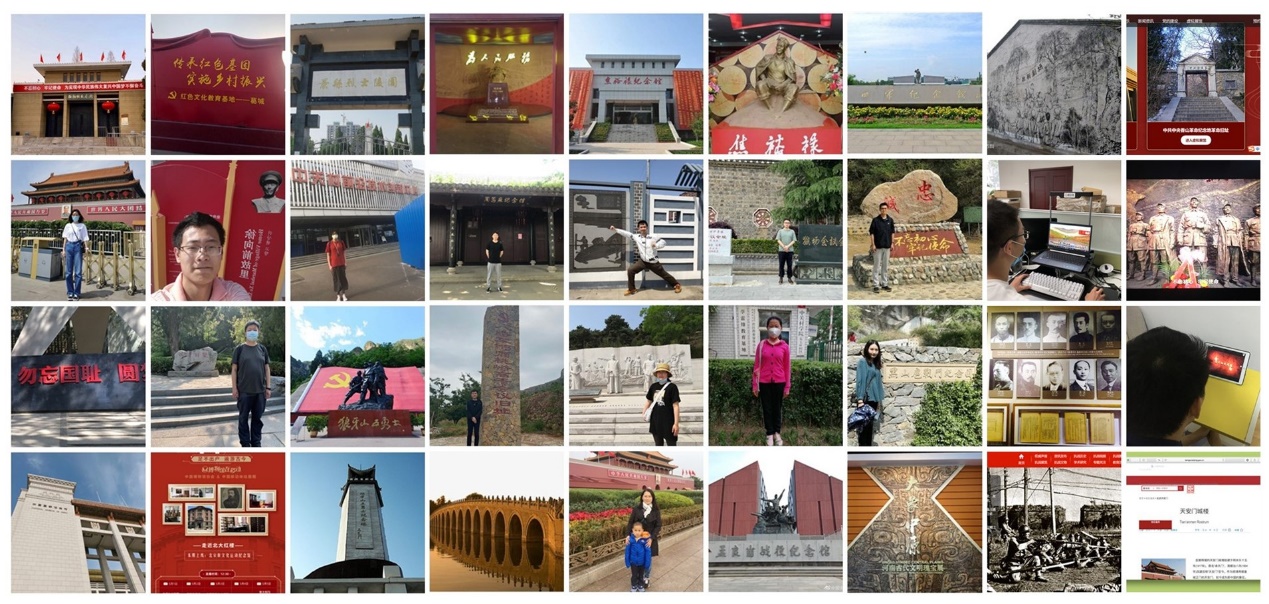 支部部分党员同志通过“云参观”的方式参观了多个红色教育基地。朱晓东同志参观了香山革命纪念馆,胡琳琳同志参观了圆明园遗址公园、中国人民抗日战争纪念馆,李奕昕同志参观了天安门广场,邓丽君同志参观了四川的张思德纪念馆,李杨同志参观了卢沟桥抗日战争纪念馆……