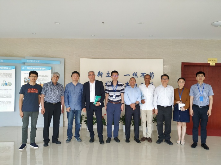 Rachid EL Guerjouma一行首先参观了东海站成果展厅,东海站科学技术委员会主任胡长青、科研科科长诸向阳介绍了东海站的历史沿革、研究领域、科研成果、国际合作等情况,双方人员就相关内容进行了深入的沟通与交流。随后的座谈交流环节,Rachid EL Guerjouma校长介绍了法国勒芒大学在声学领域的主要研究方向及成果,其余参会人员也都介绍了各自的研究方向,双方进行了热烈的讨论与交流。