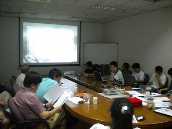 答辩过程分为项目组工作汇报及专家提问环节。在十五分钟的项目汇报过程中,五个参赛项目组分别汇报了本项目的研究背景、研究重点、工程实现情况,部分项目组还进行了现场演示。李长路项目组在Linux和windows系统中,实现了体感输入的原型系统,通过摄像头扑捉的人手图像的动作,实现了部分的鼠标功能,可进行人机交互,演示的效果在现场引起不小的轰动。彭飞项目组开发视频广告精准投放的原型系统,通过协同过滤、置信度调整、策略定制的方式进行广告推荐,通过WEB页面展示了推荐的结果。李明哲项目的存储系统针对业内的类似系统进行大量的测试分析以及性能对比,该项目已有EI论文发表。宋军和张鹏飞项目组也分别汇报了本项目组工作的亮点之处。