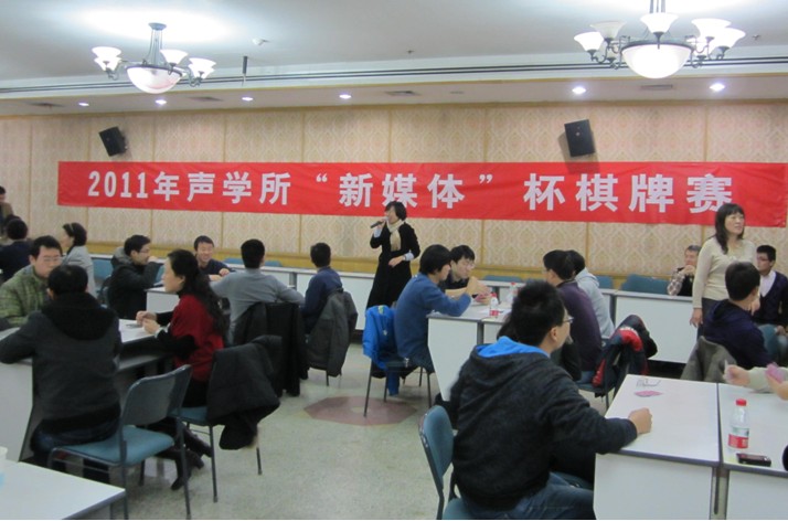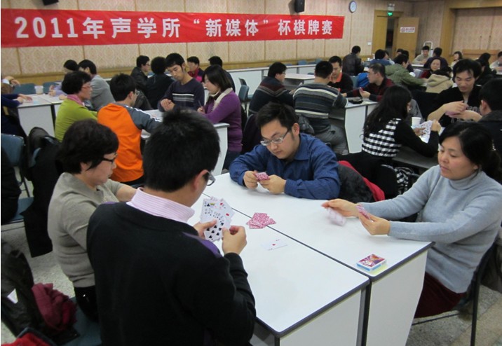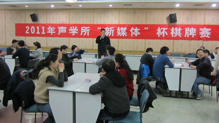 2011年12月5日中午,由国家网络新媒体工程技术研究中心赞助的“新媒体杯”棋牌赛在多功能厅拉开了战幕。所党委书记张春华,工会、职代会主席李平,所务助理、职代会常务副主席周秀霞,所办主任程洋以及赞助方代表邓浩江研究员出席了开幕式。开幕式由所团委书记崔杰主持。