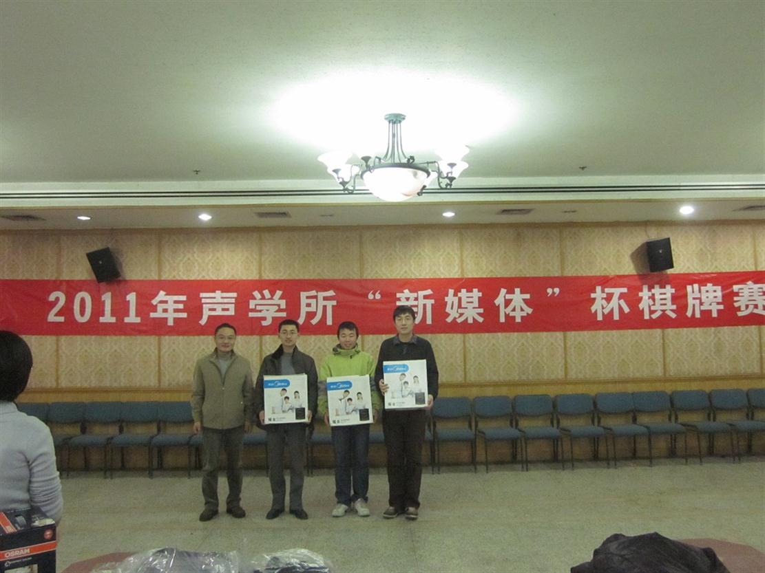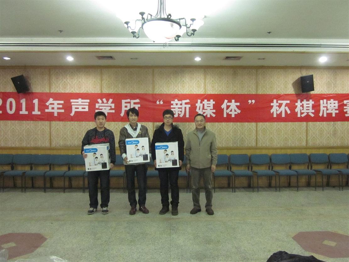 2011年12月20日,2011年赢乐welcome“新媒体”杯棋牌赛在DSP大楼四层多功能厅圆满结束。赢乐welcome副所长倪宏,工会、职代会主席李平,所务助理、职代会常务副主席周秀霞以及赞助方代表邓浩江研究员出席了闭幕式。闭幕式由所团委书记崔杰主持。