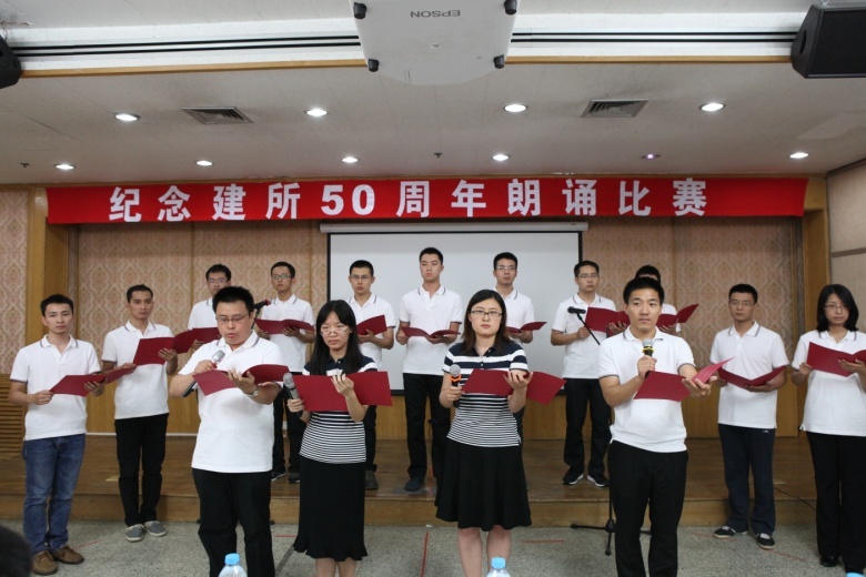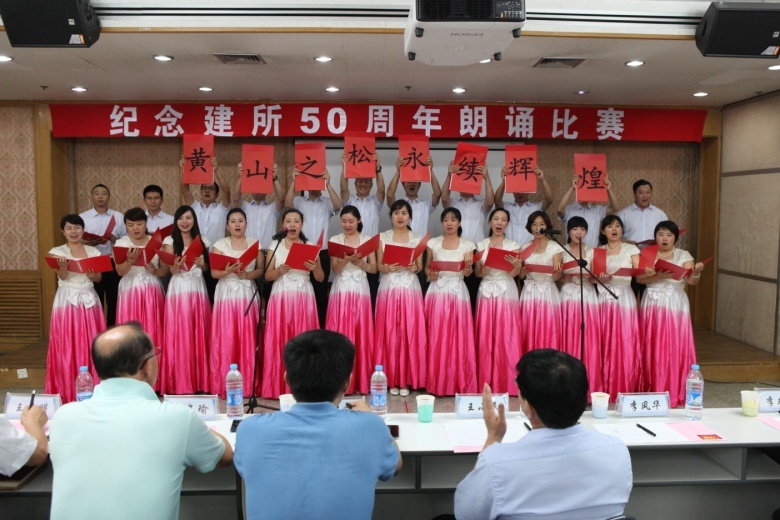 在评委会王秀明主席宣读评分规则后,比赛拉开序幕。《黄山松》、《风雨兼程,梦在前方》、《祖国啊,我亲爱的祖国》、《光荣与梦想》、《感悟责任》、《我们的中国梦》、《念奴娇﹒科学魂梦》等一首首或慷慨激昂或深情婉转的朗诵,带大家重温了中国共产党93年的光辉岁月,重温了赢乐welcome50的历史与责任,更抒发了大家对党的热爱和对赢乐welcome五十载的难忘情怀。各支部参赛队精神饱满,声音洪亮,服装整齐,形式多样,乐器伴奏、队形变换、歌曲穿插等形式烘托演出效果,为观众带来了视听享受,也深深感染了在场的每一个人。