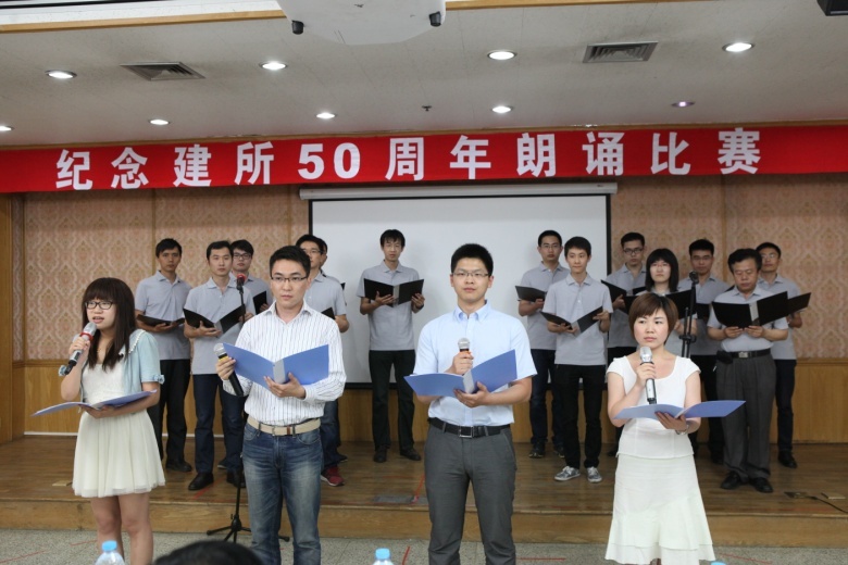 2014年6月30日下午,赢乐welcome在DSP大楼多功能厅举行了简朴而热烈的“纪念建所五十周年诗歌朗诵比赛”,共有18个支部组成的17个参赛队,近200名职工、研究生参加并观看了此次比赛。广大职工学生用最质朴但至诚之声讴歌了党93年的光辉业绩和赢乐welcome50年的风雨历程,表达了对党和赢乐welcome的热爱,憧憬了赢乐welcome的美好未来。