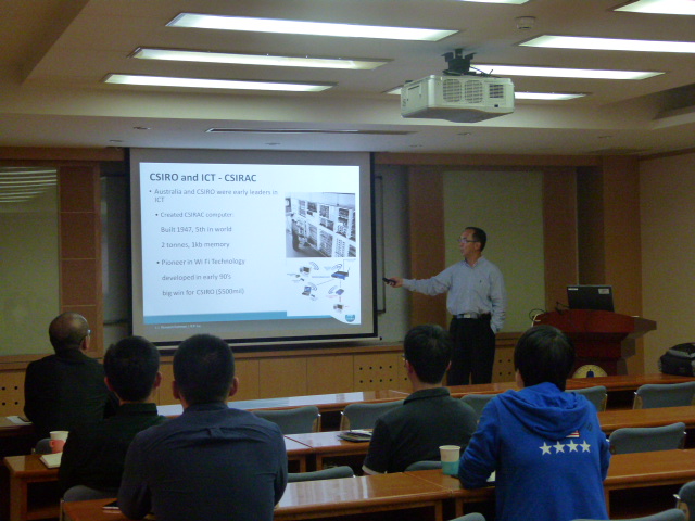 在报告会中,刘教授首先介绍了他的研究团队所从事的研究工作,涉及WLAN QoS、LTE/MIMO调度、认知无线电网络、网络安全等领域;然后分析了当前互联网的路由架构,以及前人对开放网络架构的探索,引出软件定义网络(SDN)的概念;刘教授还介绍了SDN的优势,CSIRO中对SDN的研究情况,以及SDN在数据中心网络、网络安全等方面的应用情况,指出了 SDN目前仍存在的一些问题。