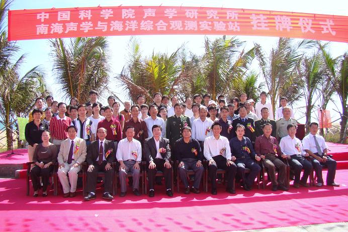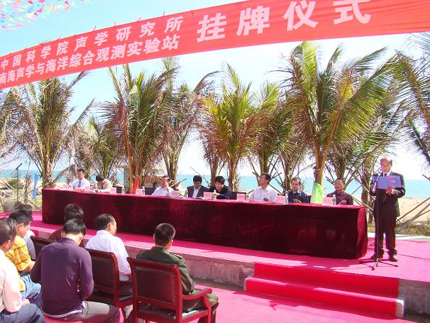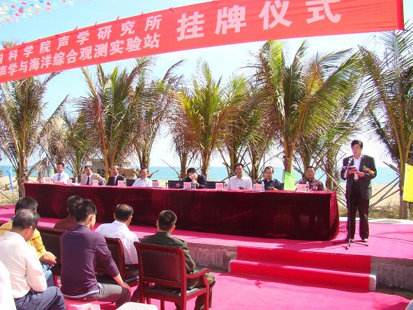 中国科学院张仁和院士也亲自到现场祝贺。张院士讲到,作为一名从1958年开始就在海南工作了20多年的老科技工作者,老海南人,我把自己一生中最美好的青春献给了海南,对海南始终怀有一份深厚的感情和眷恋。在海南建一个临海的海洋声学和综合观测实验站是我一生中的梦,也是我们这一代从事海洋声学研究工作者的梦,今天“南海声学与海洋综合观测实验站” 和“声场声信息国家重点实验室海南实验基地”正式挂牌,我感到由衷的高兴。我国是一个海洋大国,但目前还不是海洋强国。今年,胡锦涛总书记在山东讲话时提出了要发展“海洋绿色经济”,海南作为一个海洋大省,发展海洋绿色经济,同样也是责无旁贷的。海洋与声学是密不可分的,要发展海洋经济、维护海洋安全、保障海洋资源的利益,离不开海洋声学的发展,更离不开临海观测实验站综合数据的积累。“南海声学与海洋综合观测实验站”有着得天独厚的自然条件和地域优势,我们要充分利用好这一实验平台,通过加强院地合作,提高海洋科技水平,为国防安全服务,为海洋经济发展服务。