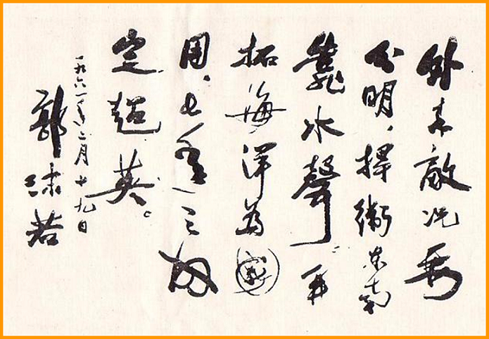郭沫若院长亲笔题词