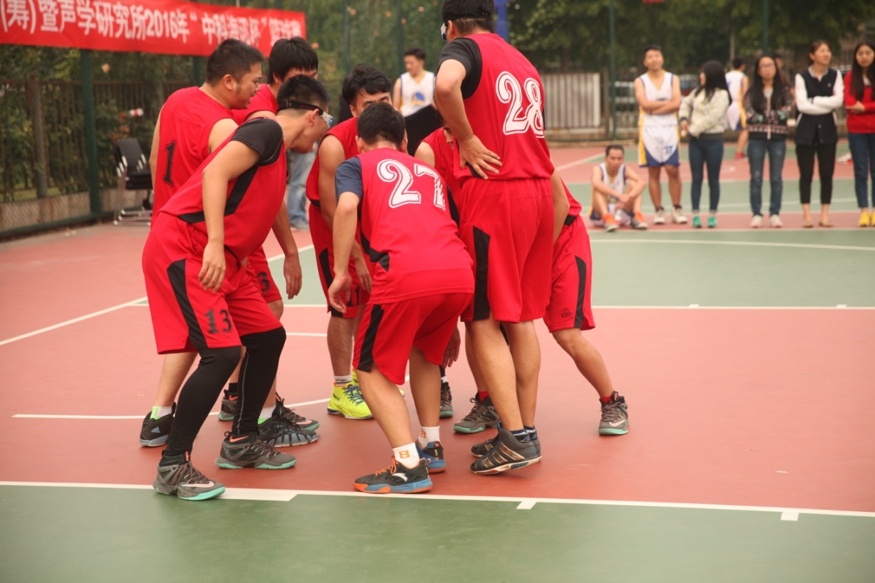 决赛对阵水声工程中心,作为今年补充了很多新鲜血液的水声工程中心在小组赛中相继战胜DSP、噪声、超声篮球队,实力不容小觑。不过决赛当天由于有部分球员的出差,使得阵容不够完整,有一些小遗憾。比赛开始后两队进入状态较慢,命中率都不高。比分缓慢上升。在次节有球员受伤下场之后。我方开始进入状态,内线屡屡得手,而水声工程中心以炮轰打法为主,碍于阵容不完整,无法发挥威力,无奈比分被拉开。最终一声哨响,本届篮球赛圆满结束,重点室篮球队以41比27成功卫冕!