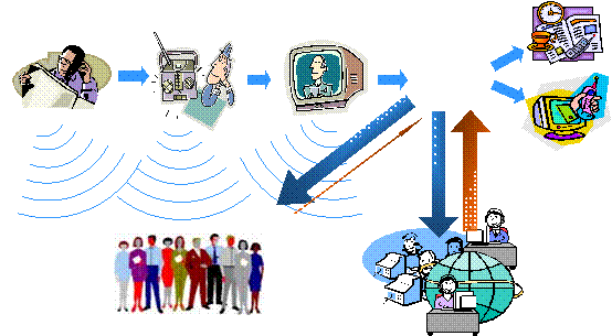 新媒体技术使个人能随时随地以有线、无线、移动的方式成为网络媒体内容的制作者、发布者和接收者,从而有别于传统媒体使用两分法把人们划分为生产者和消费者两大阵营。它消解了传统媒体(电视、广播、报纸、互联网)之间的边界,真正实现了“跨媒体”;传播形式的多样化消除了网络(互联网、广播网、移动通信网和固定通信网)之间的边界,可以“跨网络”;消解了终端(PC、手机、机顶盒等)之间的访问边界,实现了“跨终端”。包括网络电视、有线数字电视、手机电视、移动电视、楼宇电视、播客、视频聊天、远程医疗在内的许多新媒体业务形态正在逐渐走进人们的生活。