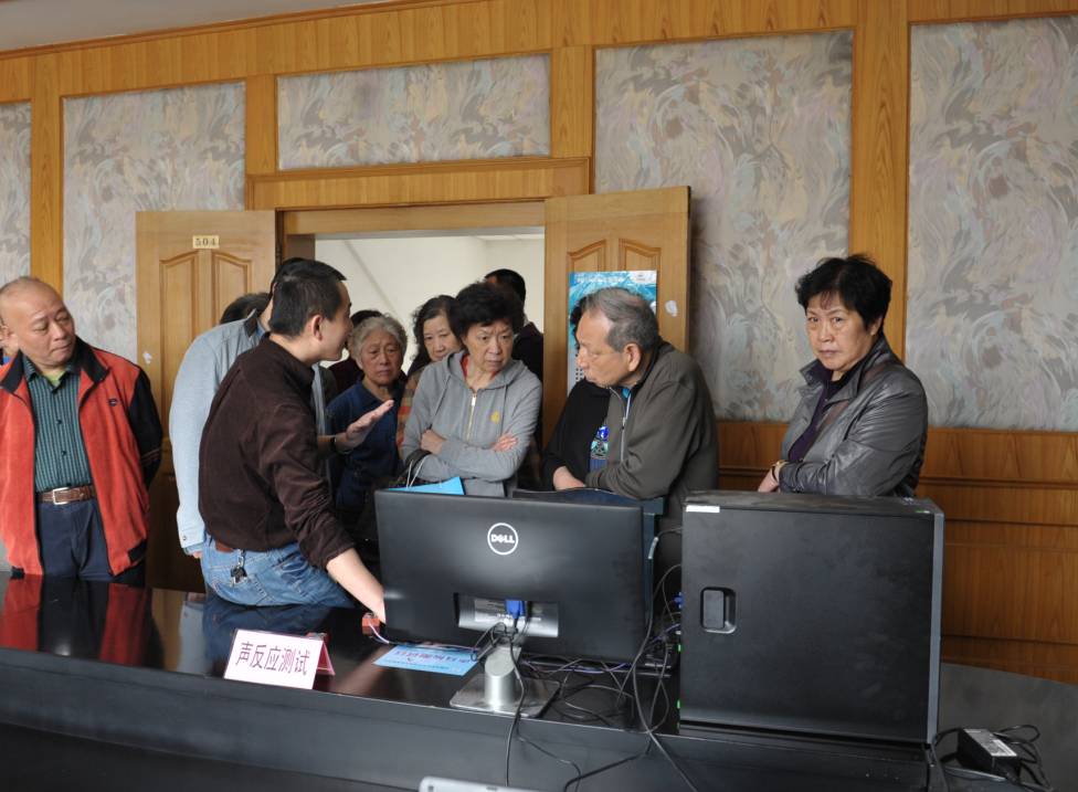 实验室还特别为枫林街道参与的每位老人一对一开展了耳道测试以及纯音听力测试,让老人们了解了自身听力损失的原因,并针对听力情况进行了效果评估,通过试戴助听器让老人们提高了保护听力的意识,取得了良好的宣传效果。