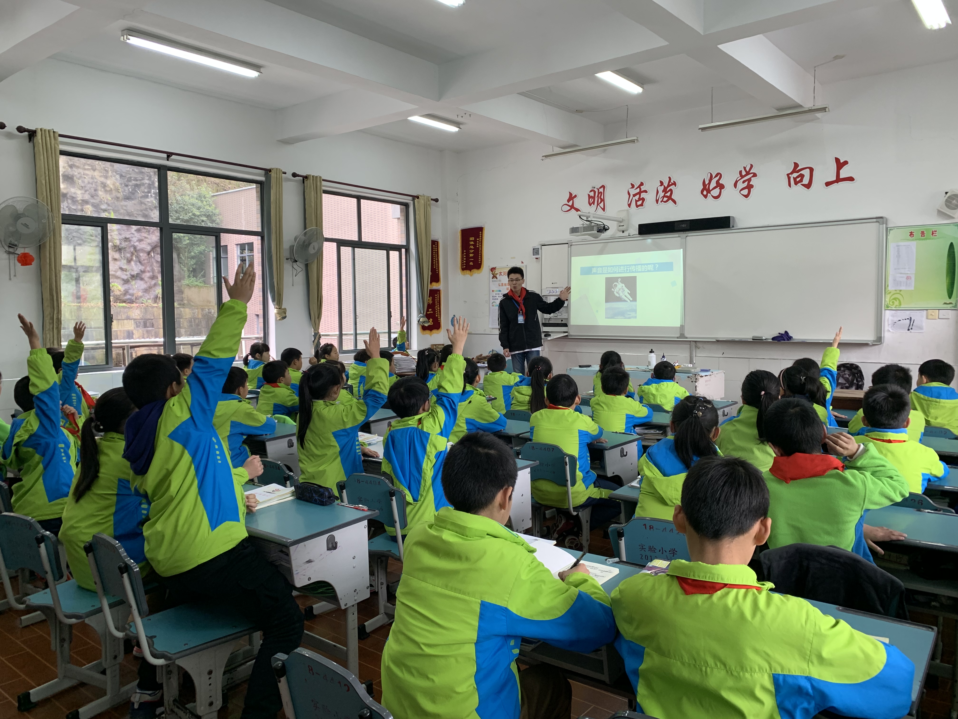 志愿者们来到教室,正式开讲“奇妙的声音”“超声清洗”两堂科普课。在“奇妙的声音”主题讲座中,志愿者们分别就声音是怎么产生的、声音是怎样传播的、声音的三要素等小知识与同学们深入交流,让孩子们对声音的产生与传播有了基本的认识,还以你划我猜的小游戏让孩子们了解了声音在日常生活中的重要性;在“超声清洗”主题讲座中,志愿者们以有奖小提问作为开始,迅速活跃了课堂气氛,拉近了与小同学们的距离。随后志愿者们分享了超声清洗的客人们、超声清洗的优点等问题,最后还进行了超声清洗的实际体验,让孩子们对超声清洗有了更加深入的了解。