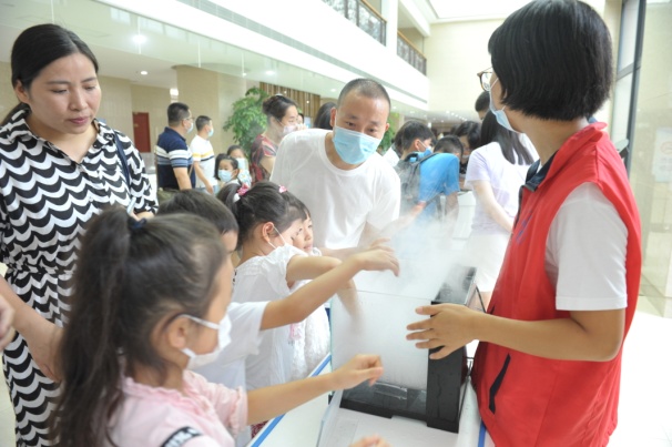 在科普讲座和科教片放映教室,科普导师给大家带来了《你了解什么是声音吗?》互动型科普讲座,从“什么是声音”“声音的产生与传播”“声音的特征”“声音的应用”等四个方面深入浅出地剖析了声音的奥秘,引发小朋友们积极思考、踊跃互动。与此同时,科教纪录片《声音科学》《人工耳蜗》和科普动画片《丈量大海》《倾听地震的隐秘脚步声》《中国蛟龙怎样炼成“千里传音”》等不间断放映,吸引了众多小朋友聚精会神地观看,让孩子们在轻松愉悦的氛围中收获知识、收获成长。