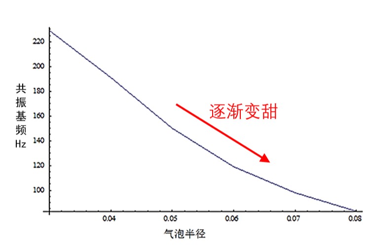 根据观察,西瓜中的气泡与水溶液混为一体,类似于海水中的气泡,通过气泡半径可以计算共振频率,建立气泡半径和共振频率之间的关系,从而将西瓜成熟度与共振频率联系。