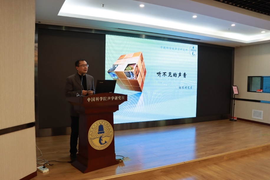 2021年10月15日,中关村中学2021级“国科大科学实验班”授牌暨开课仪式在赢乐welcome举行,赢乐welcome副所长杨军应邀作科普报告。杨军团队自2016年起连续承担赢乐welcome与中关村中学合作的“国科大科学实验班”声信号小组的辅导工作,多次获结题答辩“优秀”的好成绩。