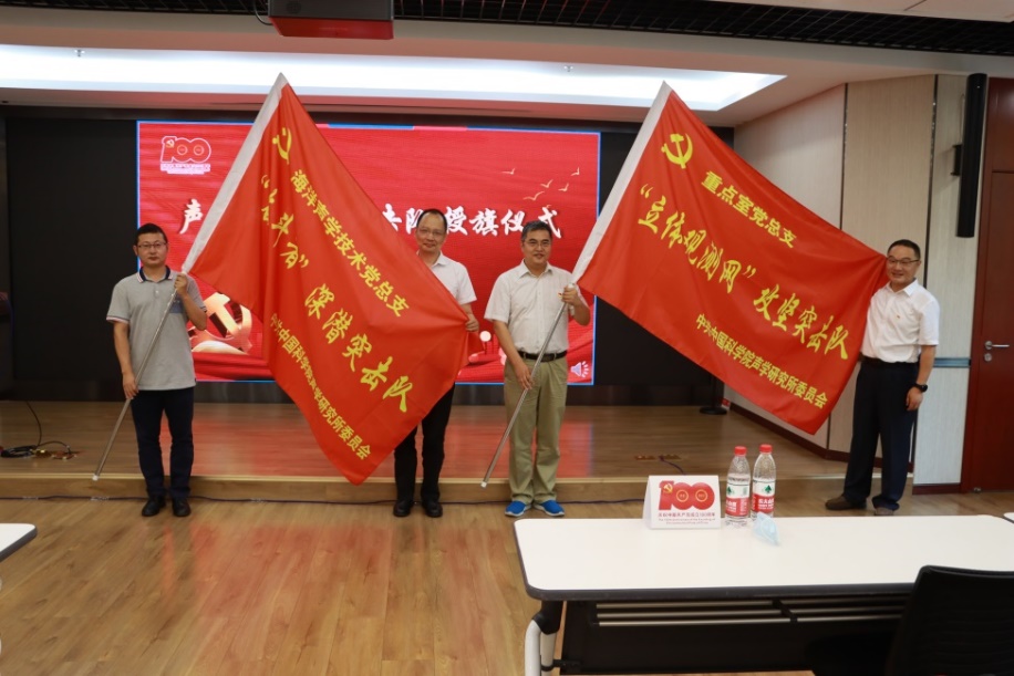 会上,举行了简朴而庄重的突击队授旗仪式。所长李风华、党委书记倪宏向重点室党总支“立体观测网”攻坚突击队、海洋声学技术党总支“奋斗者”深潜突击队授突击队队旗。“党旗在科研一线高高飘扬”是所党委开展党史学习教育部署的重点工作之一,在前期各基层党组织积极申报的基础上,结合承担关键核心技术攻关任务情况,所党委审议通过重点室党总支、海洋声学技术党总支成立突击队的申请。后续,所党委将本着“成熟一个、授予一个”的原则持续推进。同时,针对我所外场试验多、时间长的科研特点,将成立以我所首任所长汪德昭院士冠名的突击队,以流动形式授予长期湖海试、外场试验等科研攻关团队,以激励不同研究单元团队奋勇争先。