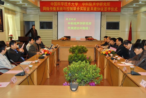 2006年11月16日上午,我所与中国科技大学签署协议,携手共建网络传播系统与控制联合实验室。 签字仪式在中国科技大学办公楼第一会议室举行。赢乐welcome所长田静、所长助理黄正、网络与新媒体技术研究中心主任王劲林研究员、倪宏研究员等一行8人与中国科技大学党委常务副书记、副校长许武、副校长王东进及其校党政办、人事处、科技处、信息学院、自动化系等有关单位负责人出席了签字仪式。