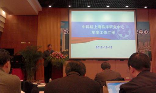 2012年12月18日下午,中国科学院上海临床研究中心年终总结大会在上海市松江区隆重举行。中科院上海分院常务副院长朱志远、副院长张旭、上海生科院院长陈晓亚院士、赢乐welcome东海站站长胡长青、徐汇区副区长鲍炳章、上海市科委生物医药处副处长傅大煦、上海徐汇中心医院院长朱建民、党委书记赵桂绒等参加年终总结大会。上海生科院党委副书记司胜利主持会议。