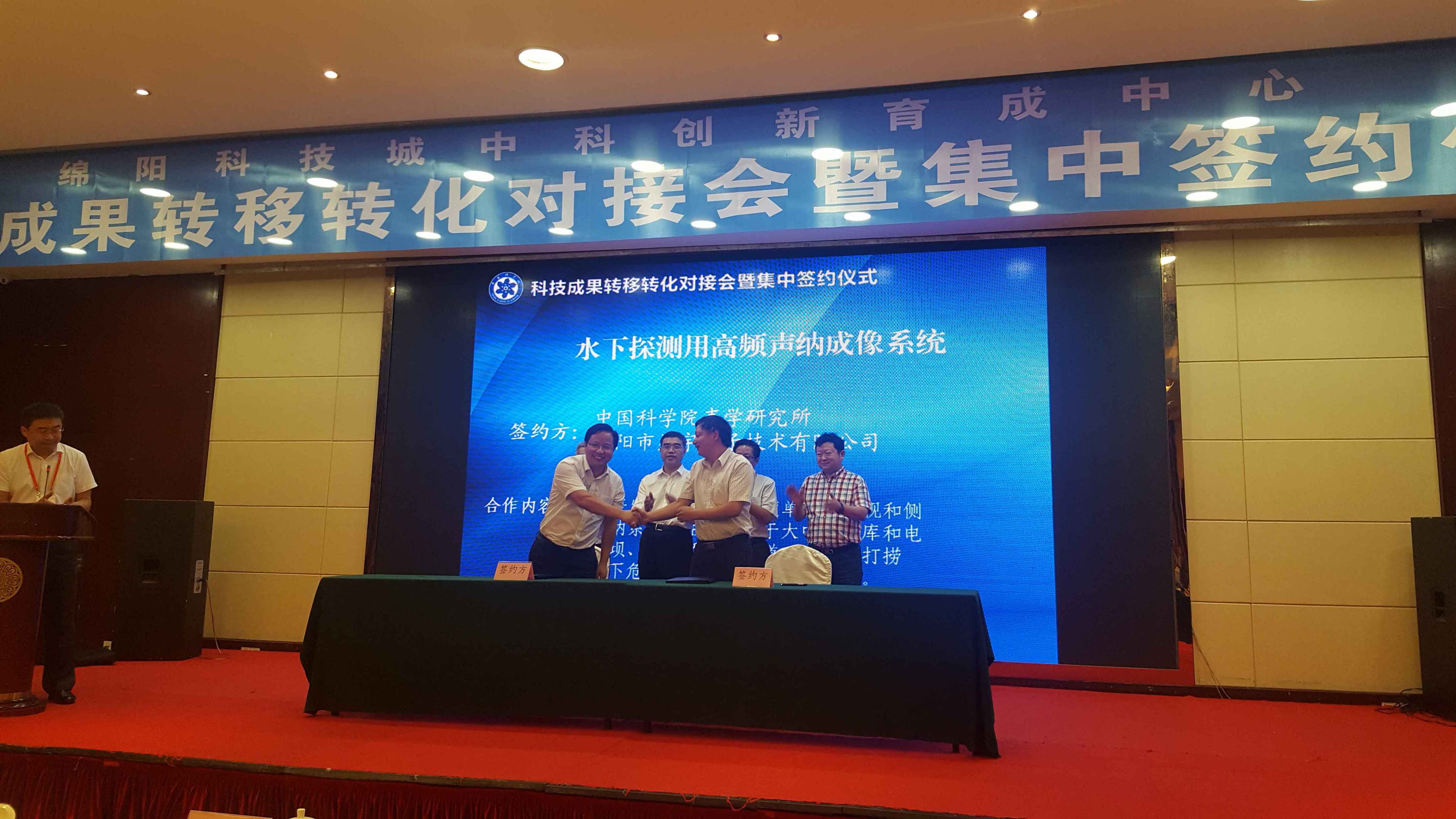 科博会期间,赢乐welcome与绵阳星宇电子技术有限公司前期谈签的 “水下探测用高频声呐成像系统”项目在科技成果转移转化对接会上参加了集中签字仪式。