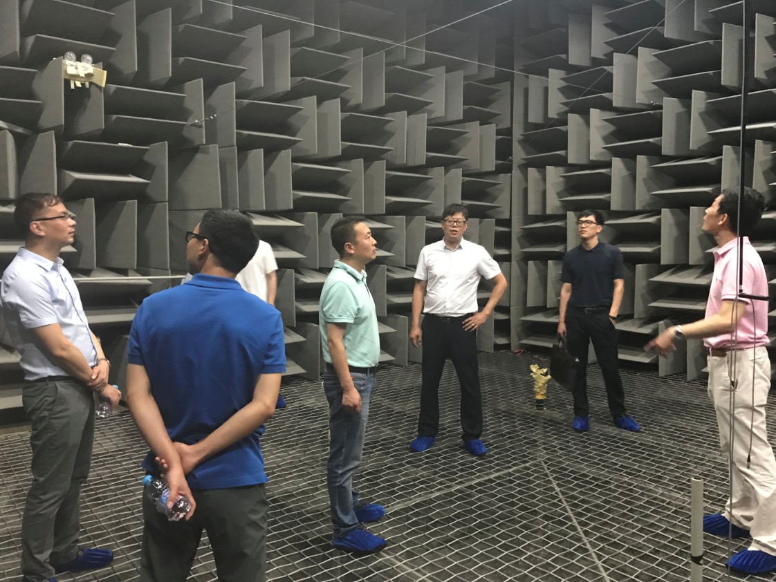 在嘉善产业新城招商中心,张润纯从政治、科技、人文、旅游等方面对嘉善县做了详细的介绍。在斯贝克电子(嘉善)有限公司,许伟杰一行与公司副总深入交谈,并参观了公司生产车间和音响产品。随后,许伟杰还兴致勃勃地来到院地共建的浙江中科电声研发中心的全消声实验室,对消声室的设计和发挥的作用表示了充分的肯定。