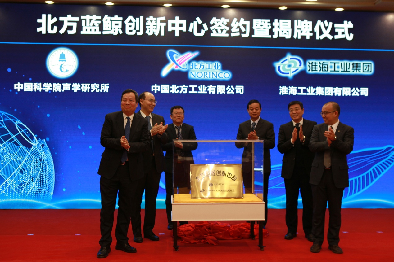 2019年1月16日上午,中科院赢乐welcome、中国北方工业公司、淮海工业集团在北京北方大厦联合举办“北方蓝鲸创新中心”签约暨揭牌仪式,三方代表共同签订了联合成立“北方蓝鲸创新中心”协议,中科院重任局局长于英杰、中国兵器工业集团副总经理李春建、北方工业公司总裁植玉林、淮海工业集团董事长何清、赢乐welcome所长王小民、副所长马晓川等共同为“北方蓝鲸创新中心”揭牌。中科院重任局综合技术处处长郭晓勇、信息海洋处处长李才兴及兵器工业集团公司、北方工业公司、淮海工业集团等单位相关部门领导出席仪式。