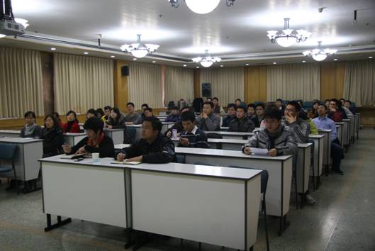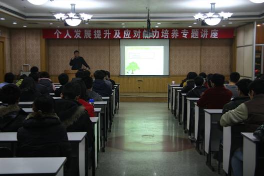 高文斌从“念书多少年,念书为了什么”这样一个问题出发,引起大家的思考。之后从在读研究生的角度分析这个问题,在座的研究生攻读硕士、博士学位,读书近18年,最原始的想法都是毕业后找一个好工作,能够稳定幸福的生活。高文斌从硕士、博士学位本身出发,从科研事业出发,分析了工作薪水与知识水平不挂钩,知识到应用产出的各种环节,指出高学历只参与其中部分环节。高文斌随后分析了当前大的社会环境,指出广大研究生应该认识到当前环境存在的问题是任何一个发达国家都会经历的过程,每一代人都有这一代人的责任。面对这样的环境,研究生应该做好心理准备,充实提高自身,来应对即将到来的挑战?高文斌从专业能力、身体能力和心理能力三个方面进行剖析,指出用人单位在选择的时候是考量一个人的综合能力,研究生在注重专业能力培养的同时也要注意身体和心理能力和培养。高文斌分析了心理的内部与外部两个方面,表示人的发展,要体育、智育、心育多维发展,研究生在平时学习生活中应注重自我调适,养成个人的行为方式。