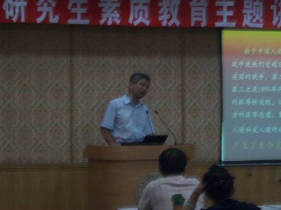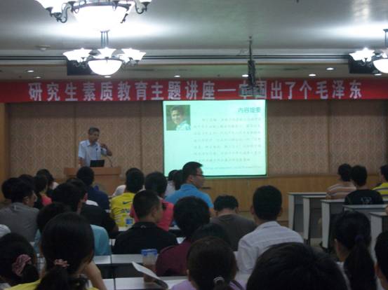 7月22号下午2:00,在DSP大楼多功能会议厅,研究生院副院长、博士生导师马石庄应邀为赢乐welcome全体研究生作研究生素质教育主题讲座,主讲题目是“中国出了个毛泽东”,为我所研究生上了一次生动而深刻的爱国爱党教育。讲座由倪宏副所长、副书记主持,人事教育处的相关同志也听取了讲座。