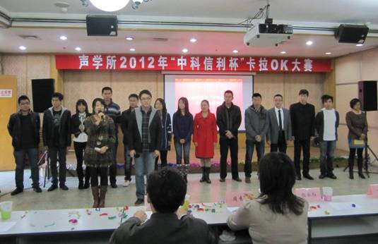 比赛最终结果为一等奖:旷玮;二等奖:尚秋里、商志刚和李贤胜组合;三等奖:刘沫,李晨,张超;优胜奖:苏林和戴文舒组合、王嘉、刘楠、万玉龙、郝文昌、董海涛。比赛结束后,参赛选手与到场领导及工作人员合影留念,2012年“中科信利杯”卡拉OK大赛圆满结束!