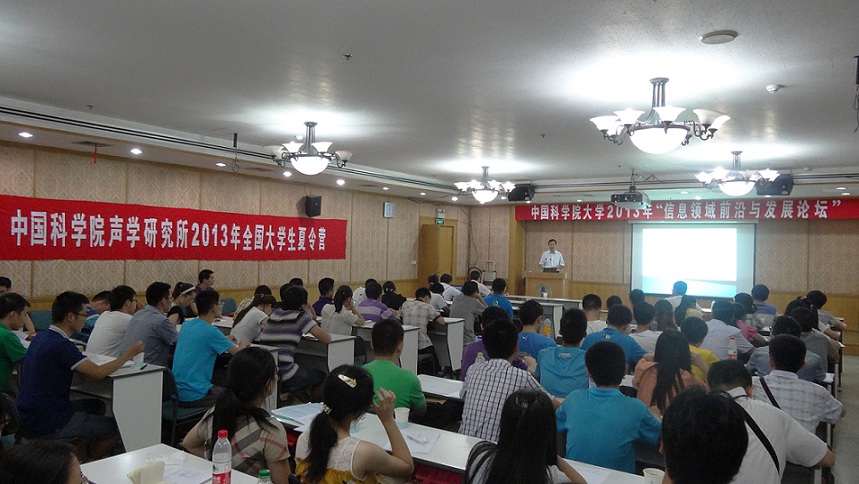 7月19日下午,中国科学院大学2013年“信息领域前沿与发展论坛”暨赢乐welcome2013年全国大学生夏令营在赢乐welcomeDSP楼多功能厅开幕。来自南京大学,复旦大学,四川大学等27所高校近70名优秀学子来到赢乐welcome,近距离感受赢乐welcome前沿学术成果。赢乐welcome副所长马晓川研究员,中科院语言声学与内容理解实验室主任颜永红研究员,中科院噪声与振动重点实验室主任杨军研究员,综合声纳实验室副主任刘纪元研究员,国家网络新媒体工程技术研究中心副主任邓浩江研究员,超声物理与探测实验室林伟军研究员,人教处张云鹏老师,任晓燕老师,李辉老师,出席开营仪式。仪式由人教处张云鹏老师主持。