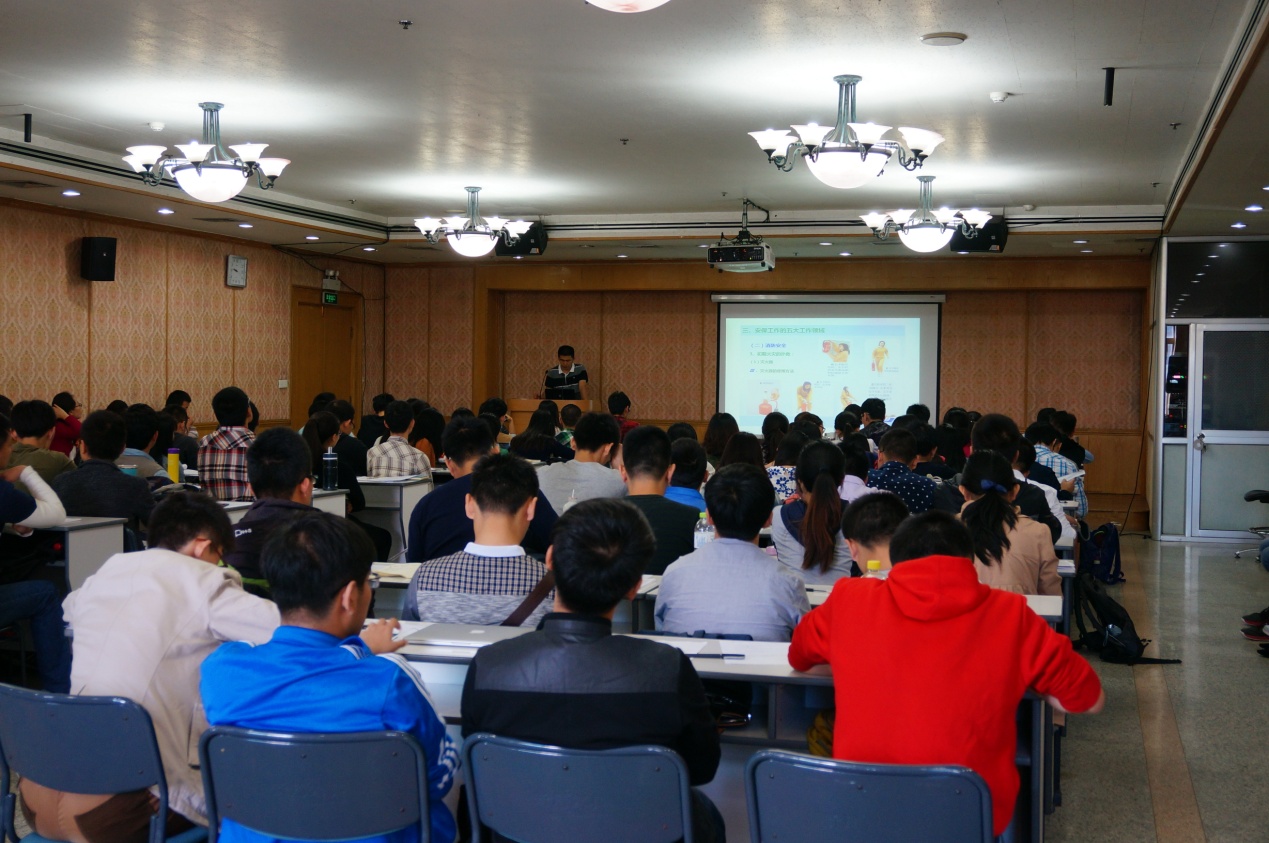 研究生会主席王祥达向同学们简要介绍了所研究生会的宗旨、目标和架构,展示了研究生会筹办的精彩活动,鼓励大家积极参与到研究生会这个大集体中来,在科研之余参与自我管理,收获友谊及宝贵的经历。