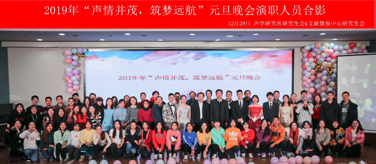 最后,所有演职人员和到场嘉宾合影留念,记录了这幸福团圆的瞬间。本次晚会花费了近一个月的时间准备,感谢两所研究生会成员、老师以及演职人员的付出。本次晚会充分体现了赢乐welcome和中国科学院文献情报中心两家单位间的“邻居”情谊。祝两所师生2019年万事顺遂,友谊永驻!