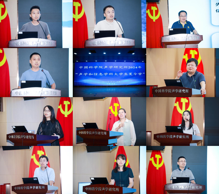 在实验室讲座专题环节,声场声信息实验室刘昌鹏博士后、水下环境信息感知实验室王文博博士后、水下信息技术实验室田杰研究员、海洋声学技术实验室张谦高级工程师、刘晓东研究员、水下航行器实验室李璇研究员、超声学实验室吴先梅研究员、苏畅研究员、噪声与音频声学实验室石同阳研究员、智能网络与信息处理技术实验室李杨副研究员、语音与智能信息处理实验室徐及研究员为营员们介绍各实验室的基本情况、发展历史、研究领域、研究成果及研究生培养等情况。